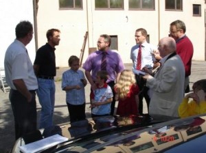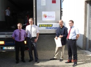 Foto 2: Sr. Diringer de la mota de la compañía de envío al lado de Sr. Kaltenbach y de Sr. Penner al lado de Sr. Plettenberg (a la derecha).
