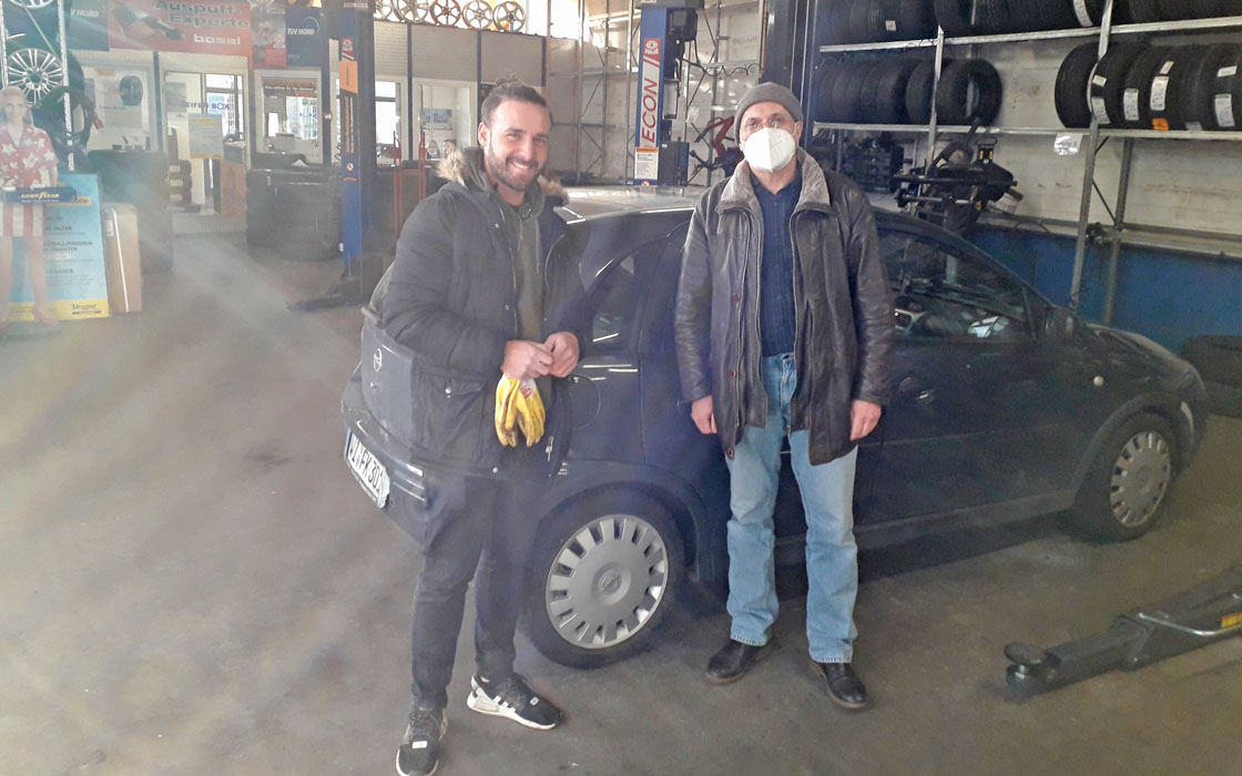 We head to aforementioned car-workshop in that suburb of Wiesbaden and at 4:45p.m. I am looking into the friendly gentleman’s face: “How come you know my nephew?” “We’ve been friends for years. Right, now where is that wheel?”