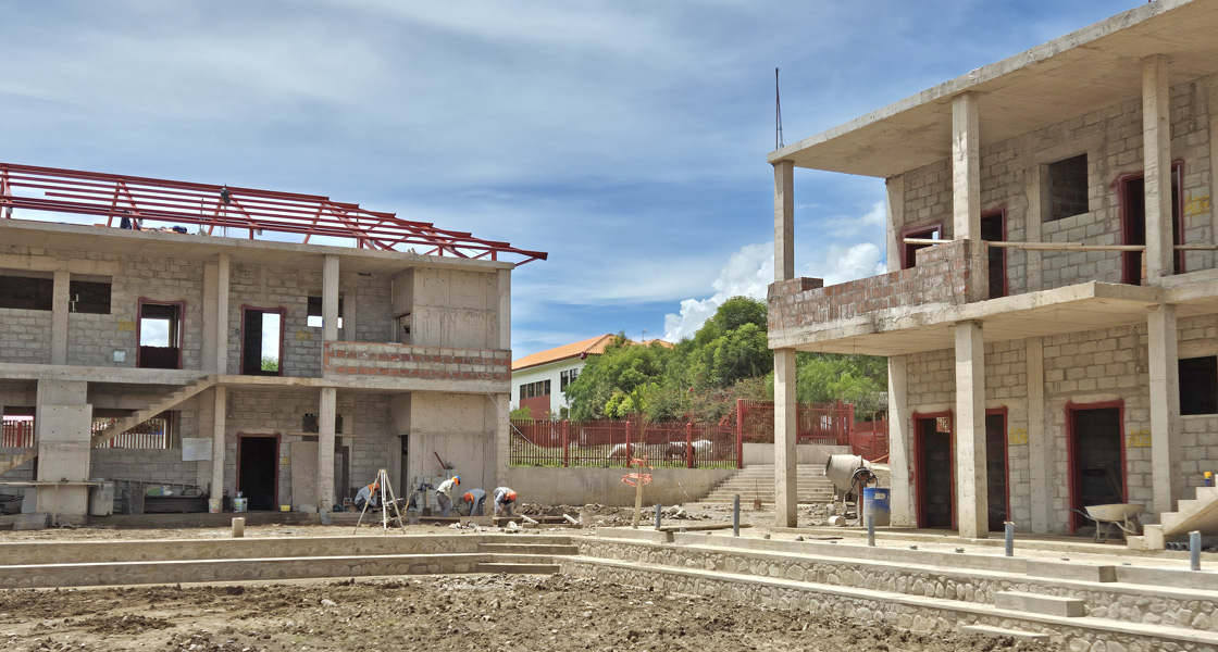 Queridos amigos, este informe de construcción es algo muy especial. Estoy sentado en Bogotá esperando con mi familia el vuelo de conexión a Francfort del Meno. Sin embargo, algunas de las fotos no tienen ni 24 horas. Trabajé en las obras hasta poco antes de abandonar el país. Fue una época especial para mí. En realidad vine a construir la ampliación del Colegio, pero también participé en la construcción de la Residencia II (hotel) y en trabajos de consultoría para la ampliación del anfiteatro y algunos proyectos menores.